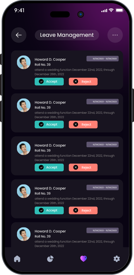 The app offers a clean, modern interface that helps campus teams handle daily tasks with ease and access real-time updates across departments.